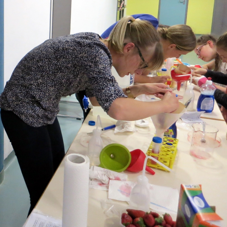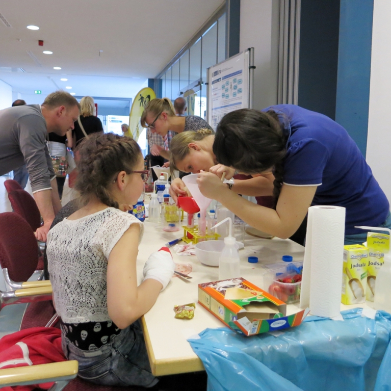 The doctoral students of the MGK 854 came up with a great program for the Lange Nacht der Wissenschaft!  Many children of all ages took the opportunity to isolate DNA from strawberries.  Here are some photos of these early career researchers (Photos: Private)